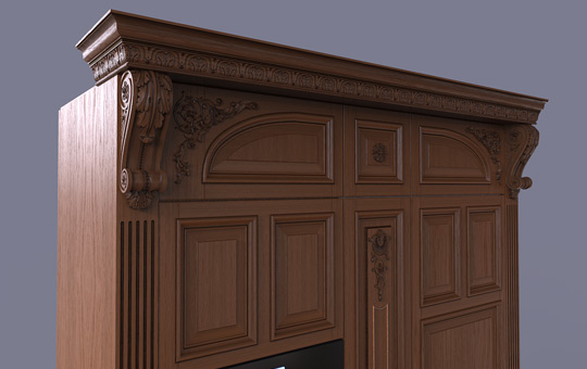 Апрель 23, 2018Винный шкаф из массива европейского дуба со встроенным холодильником. Отделка — матовый лак. Использование резьбы по дереву.